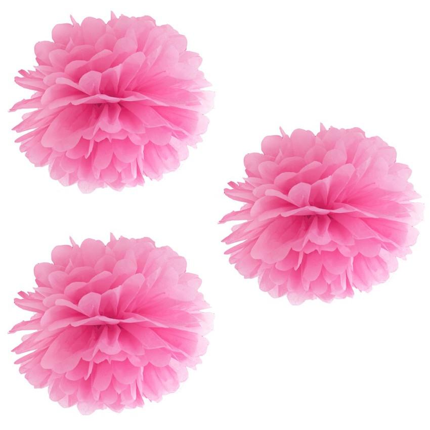 3 pink pompoms, 35 cm