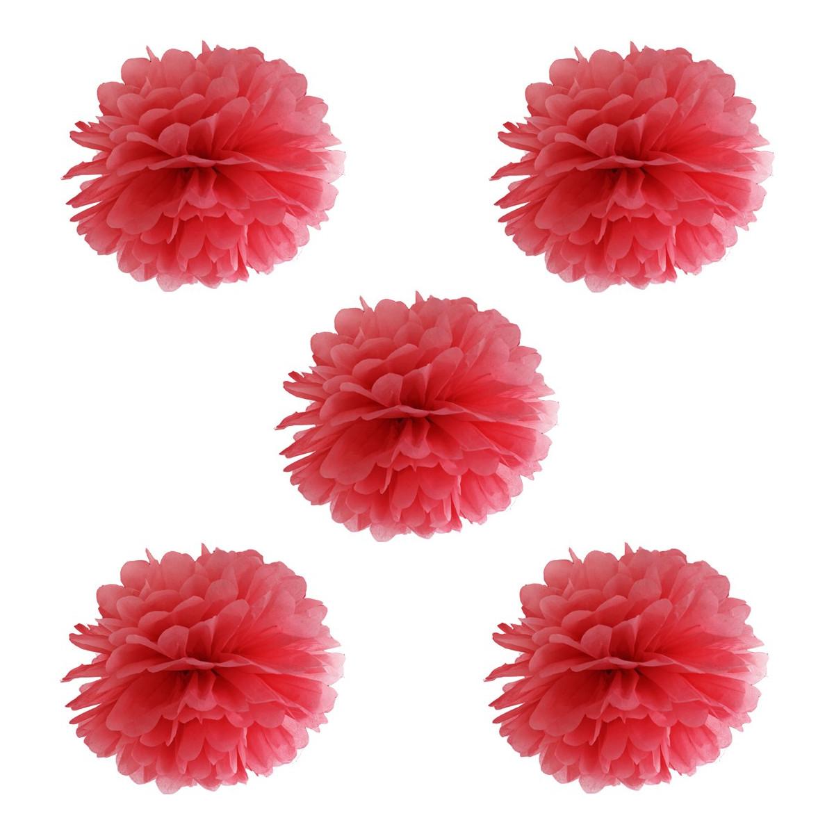 5 røde pompoms, 25 cm