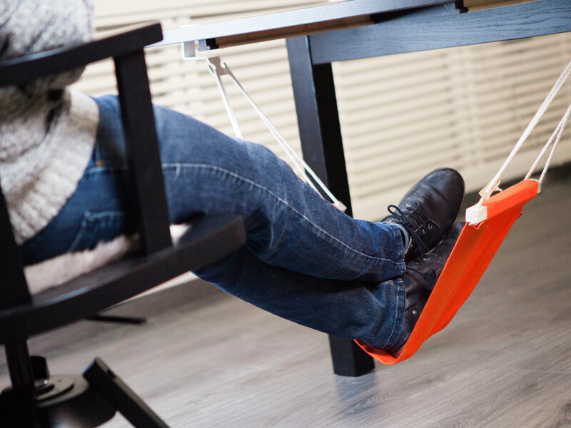 Lad fødderne hvile i vores fodhængekøje! Den er nem at montere og er perfekt under skrivebordet, når du vil have en behagelig arbejdsstilling eller bare slappe af. (Læs mere)