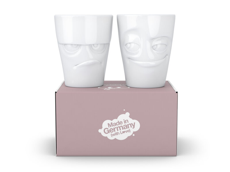 Glad spilopmager eller vredt stirrende? Uanset hvordan stemningen er ved morgenbordet, er disse stilrene krus i gaveæske den perfekte gave til én, der har et skiftende morgenhumør (Læs mere)