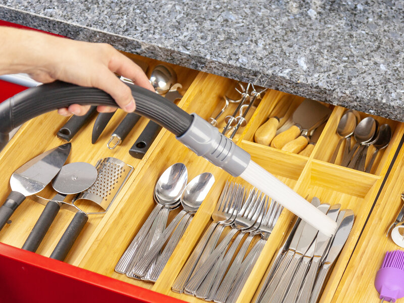 Med det smarte støvsugermundstykke Straw Duster kan du nemt støvsuge mellem småting uden at risikere, at de suges ind i støvsugeren! Fleksible plaststrimler slipper støvet igennem – perfekt til sværttilgængelige steder og skuffer! Universalfatning, pass (Læs mere)